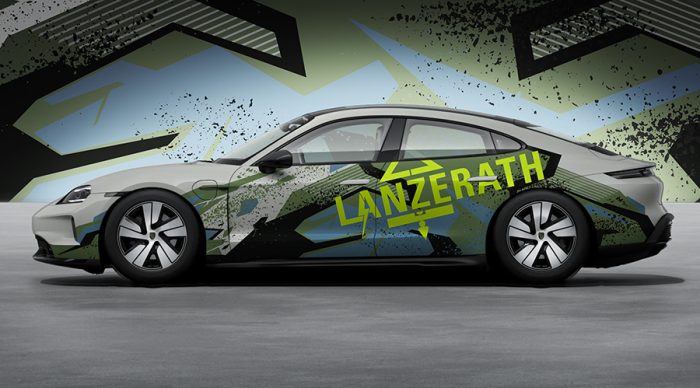 Bauunternehmung LanzerathPorsche TaycanDigitaldruck auf Transparent+ Oracal 970 Citrus Fury