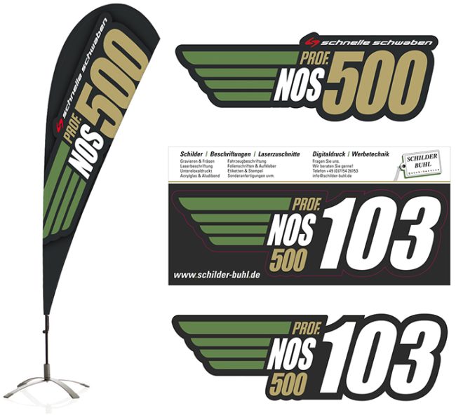 Schnelle SchwabenTrackday-Werbemittel ”NOS 500“Dropflags + Startnummern